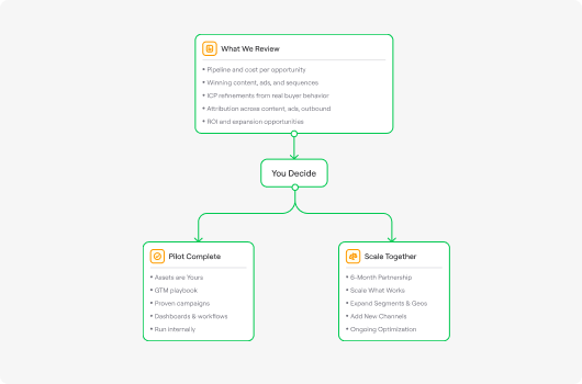 Noi costruiamo e operiamo il sistema di acquisizione clienti della tua azienda end-to-end (dalla definizione dell'ICP alla gestione delle risposte) con l'obiettivo di generare un canale di new business stabile e prevedibile. E quando il rapporto finisce, il sistema rimane tuo: liste, CRM, playbook, sequenze. Non riparti da zero.